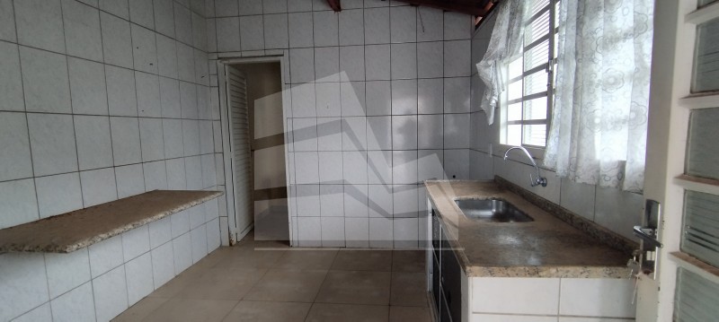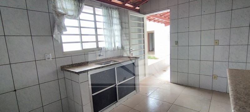 03 dormitórios( 01 com armário), sala, cozinha com armários, banheiro social, cozinha externa com banheiro, área coberta para lazer, área de serviço, despejo, quintal amplo e garagem coberta para 01 carro.