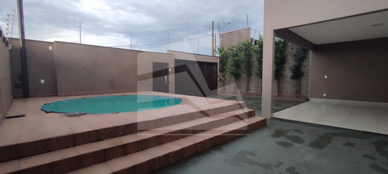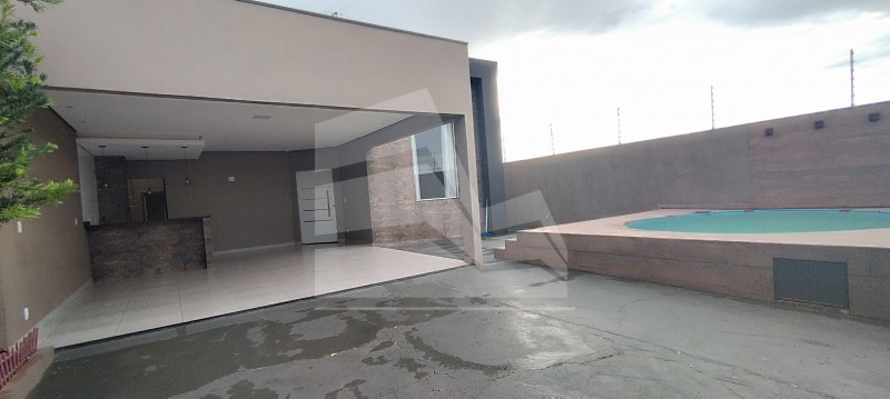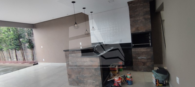 Sala ampla com pé direito alto, sala de Tv com painel, armários, copa, cozinha com vários armários, coifa, 03 dormitórios(02 com armários) sendo 01 suíte com closed, banheiro social, área de serviço coberta com vários armários, banheiro externo, grande área de lazer com churrasqueira, cozinha extra, piscina, quintal, e garagem coberta para 02 carros e descoberta para vários.